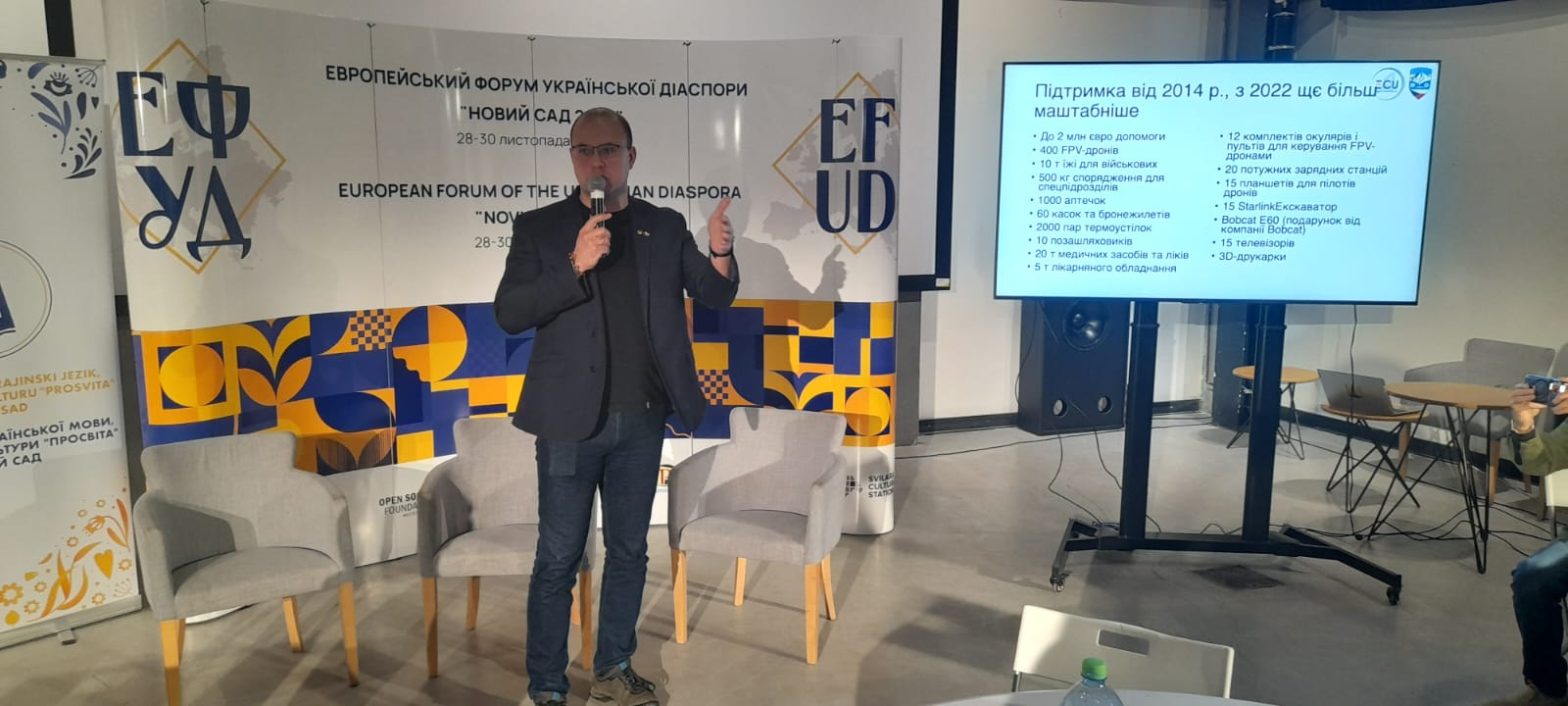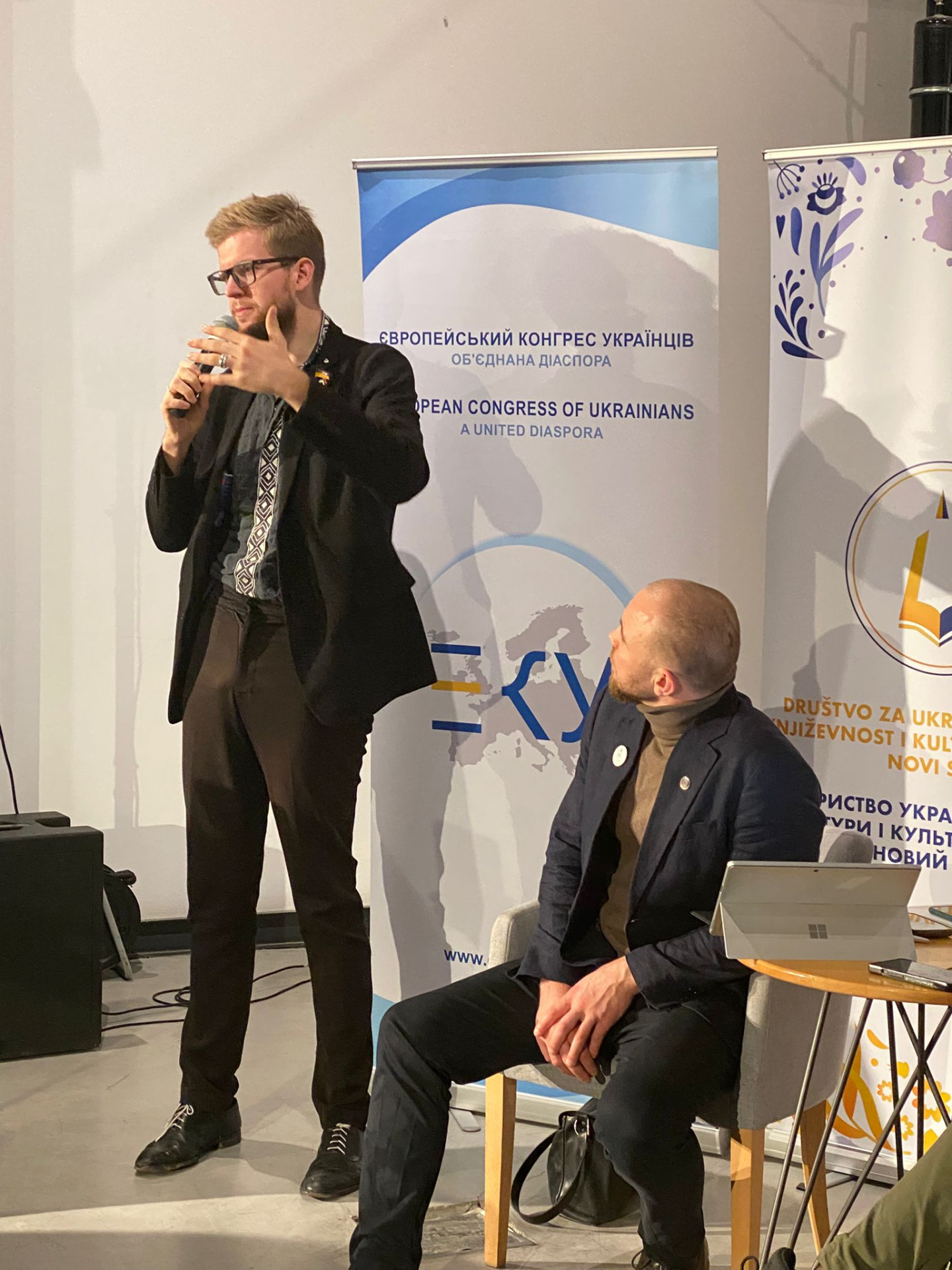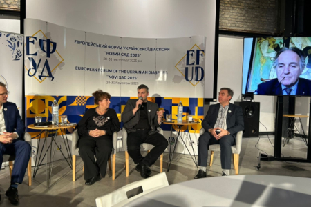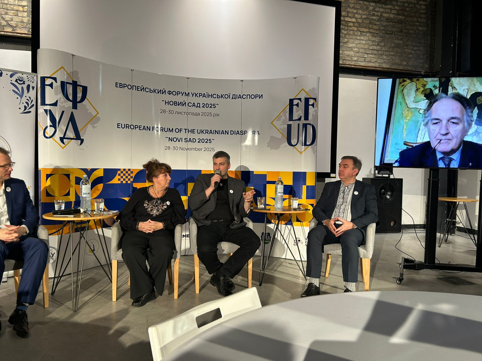28 листопада 2025 року в готелі "Планета Інн" у Новому Саді відбувся круглий стіл "Євроінтеграція і адвокація – роль діаспори та партнерів України". У розмові взяли участь сербські експерти з чіткою проукраїнською позицією: проф. др Дарко Тріфунович, директор Інституту національної та міжнародної безпеки, др Борис Варґа, політолог і журналіст, адвокат Чедомир Стойковіч, голова Групи Октобар, та адвокат Александар Оленик, заступник голови Ліґи соціалдемократів Воєводини. Учасники круглого столу обговорювали виклики євроінтеграції України та Сербії, ключові безпекові питання, просування європейського курсу, а також можливості спільної адвокації на підтримку України в умовах війни.